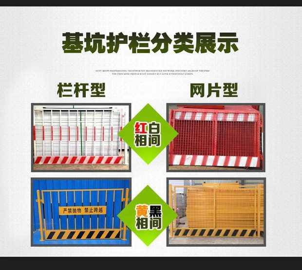 基坑臨邊防護欄樣式大致分為兩種,一種是網片式,一種是豎管式。這兩種樣式我公司都有生產且作為重點產品之一。