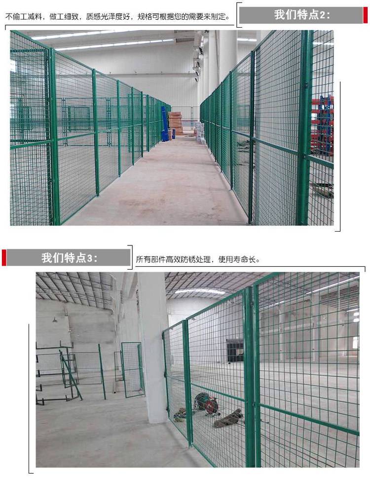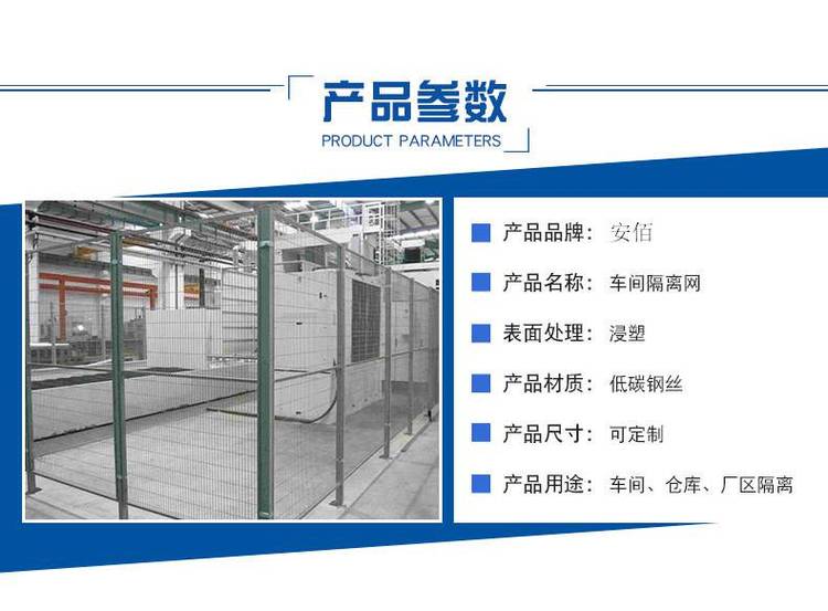 車間隔離網又稱之為車間隔離柵、車間隔離網等產品結構新穎、氣派大方。整體穩定性十分突出。所有部件高效防銹處理,使用壽命長。免維護、褪色,特別適合現代化工業場區圍界隔離。