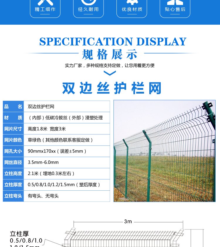 ?安平順康絲網制品有限公司坐落于絲網生產基地 中國·安平 地理環境優越 東鄰大廣高速-饒陽?安平出口,交通便利。我公司專業生產護欄網、荷蘭網、市政護欄網、球場圍網、橋梁防拋網、邊坡防護網等防護網產品。 我公司生產的防護網主要供應國內各高速路、鐵路、機場、港口、碼頭、市政、石油設備、防汛設施及養殖業的隔離防護使用;我們憑借多年的生產經驗、過硬的質量、良好的信譽、優質的服務,與全國多家客商建立了穩固的供貨關系,深受廣大客戶的好評。