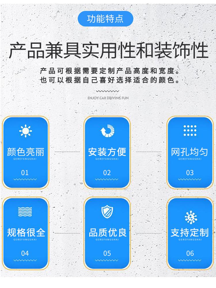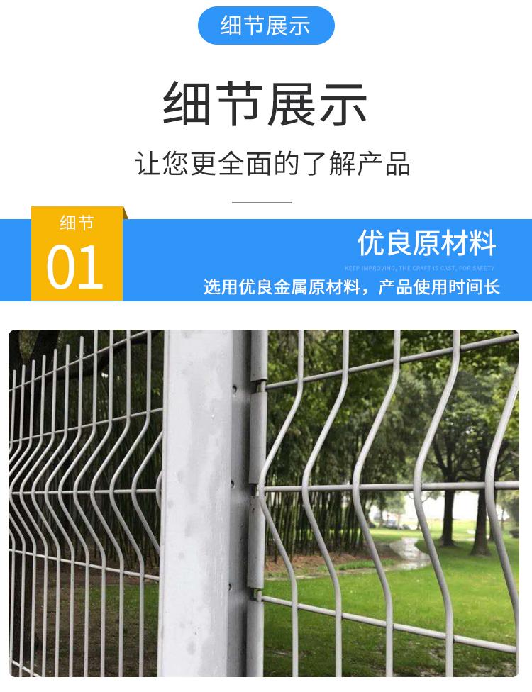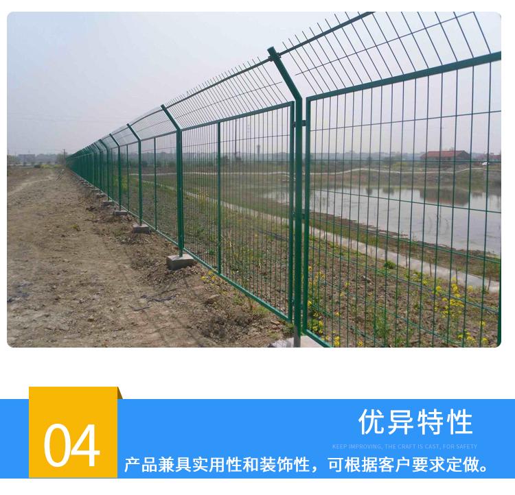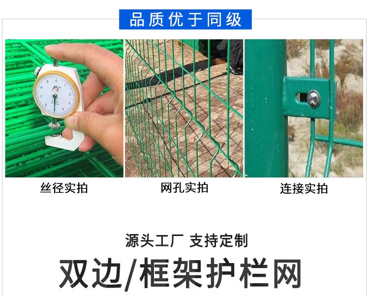 框架護欄網又稱為"邊框式防攀焊接片網",“框架隔離柵”等。它是一種組裝十分靈活的產品,廣泛用于中國的公路、鐵路、高速公路等;既可以制作成網墻,又可以作為臨時隔離網使用,只需采用不同的立柱固定方式便可實現。框架護欄網采用盤條作為原材料,經由鍍鋅、涂前底漆和高附著力粉末噴涂三層保護的焊接式網片。在這種護欄網的表面處理為鍍鋅和噴涂,也可以任選一種,頂端蓋有塑料蓋或防雨帽。