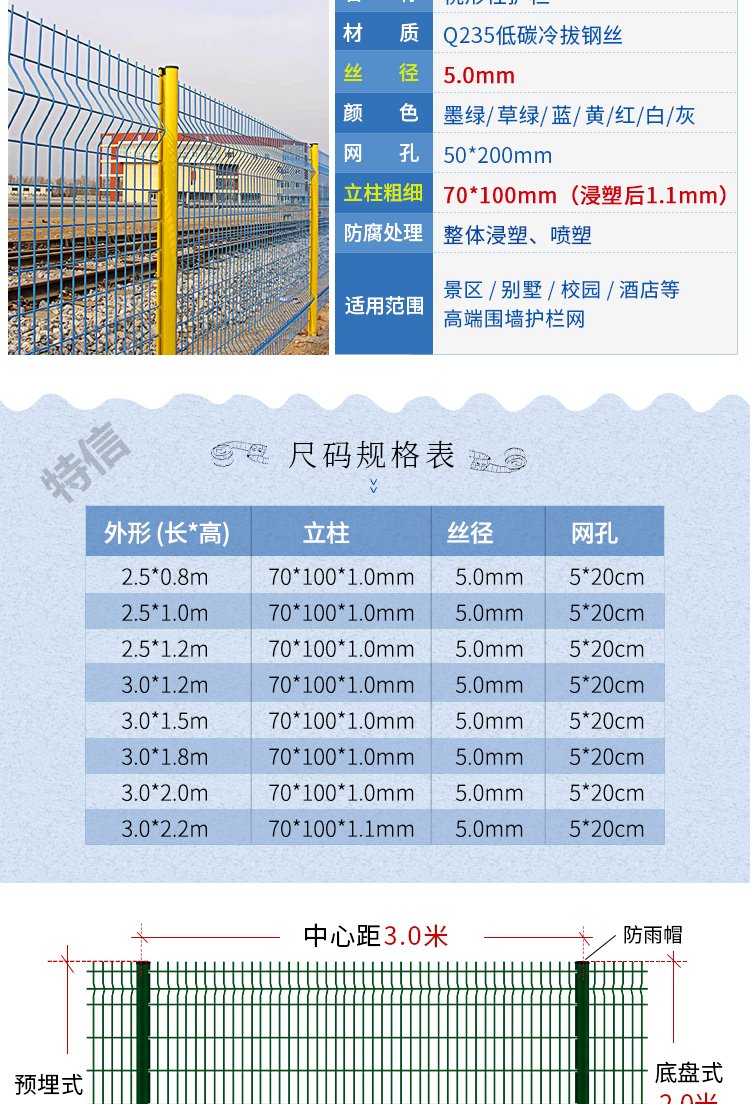 護(hù)欄網(wǎng)多少錢一米?找鐵絲網(wǎng)護(hù)欄廠家--特信護(hù)欄網(wǎng)廠,生產(chǎn)各種規(guī)格的絲網(wǎng)護(hù)欄、護(hù)欄鐵絲網(wǎng)、鐵絲網(wǎng)圍欄、圍欄網(wǎng)、鐵絲網(wǎng)護(hù)欄網(wǎng)等.鐵絲網(wǎng)護(hù)欄生產(chǎn)廠家為您提供鐵絲網(wǎng)護(hù)欄價(jià)格、鐵絲網(wǎng)護(hù)欄批發(fā)、鐵絲網(wǎng)護(hù)欄報(bào)價(jià),特殊規(guī)格加工定做,訂貨電話:13292298182