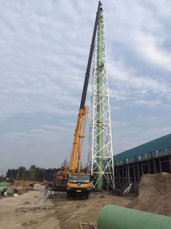用于支撐玻璃鋼脫硫塔、尾氣排放管。典型案例:河北某鋼鐵廠燒結機脫硫煙囪(80米)。